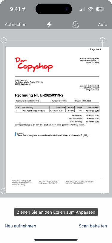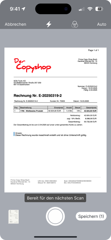 - Fotografieren Sie Belege mit Ihrem Smartphone und laden Sie sie über die mobile App hoch.