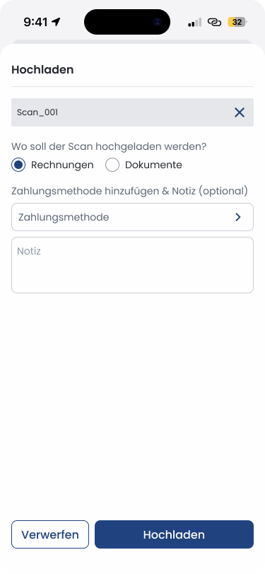 - Laden Sie Dokumente per Upload oder Drag & Drop hoch.